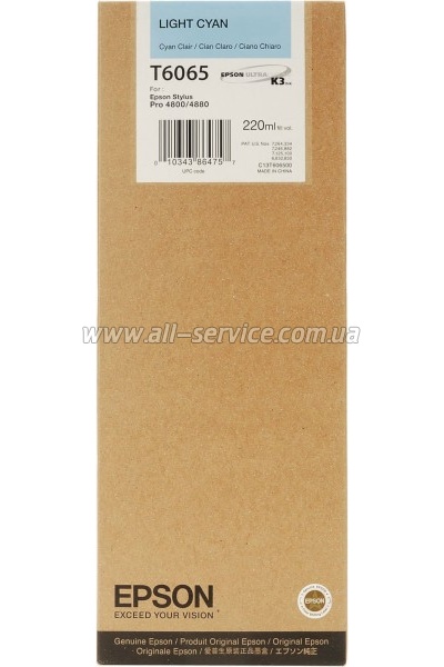 Сумісність для принтерів EPSON STYLUS PRO: 4800, 4880 Сумісність для картриджів EPSON: Epson T6065 Light Cyan C13T606500 | 6743 безнал с НДС: 6743 | ||