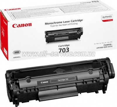 | Сумісність для принтерів CANON I-SENSYS LBP: 2900 CANON LBP: 3000 HP LASERJET: 1010, 1012, 1015, 1018, 1020, 1022, 3015, 3020, 3030, 3050, 3052, 3055 HP LASERJET M: M1319F Сумісність для картриджів CANON: Canon 703 (7616A005) | 3508.00 Оптовая цена: 3415.00 | |