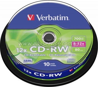 | Диск Verbatim CD-RW DL+ 700 MB/80 min 8x-12x Cake Box 10шт (43480) : 053546 Гарантия: 1056 (мес.) CD-RW Verbatim 700Mb 12x Cake box (43480) - це носії виробництва компанії Verbatim, які відрізняються високою точністю механічних параметрів, тому для запису даних можна використовувати різні моделі приводів. Ці диски демонструють високий рівень сумісності з приводами, що працюють на великих... | 462 Оптовая цена: 434.00 | |