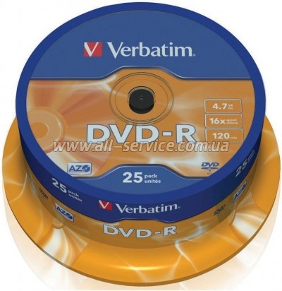 | Диск Verbatim DVD+R 4.7 GB/120 min 16x Cake Box 25шт (43522) : 053641 Гарантия: 1056 (мес.) Диск Verbatim DVD-R розроблений для користувачів, яким потрібна підвищена місткість диска. Тому продукт розроблявся, насамперед, для потреб користувачів та ділової активності в області архівування даних, відео, аудіо, мультимедіа об'єктів та іншої інформації! Особливості диска DVD-R Verbatim... | 436 Оптовая цена: 409.00 | |