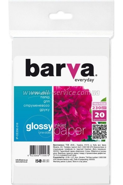 | Для якісного друку фотографій потрібно мати хороший принтер, якісні чорнила, і, звичайно ж, якісний фотопапір. Тільки якісний фотопапір здатний повною мірою передати всю яскравість кольорів зображення, надовго зберегти фотографію яскравою і свіжою. Папір BARVA 10x15 Economy Series (IP-CE230-216)... | 31.00 безнал с НДС: 31.00 | |