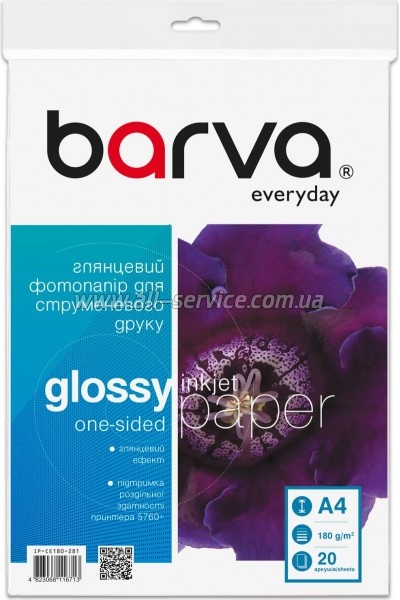 | Глянцевий фотопапір для струменевого друку Barva Everyday Glossy 120 г/ м A4 20л (IP-CE120-238) Носії легко впізнаванні за рахунок гладенького покриття і є безпрограшним вибором для друку фотографій. Даний тип фотопаперу чудово передає відтінки кольорів, зображення виходить яскравим і насиченим.... | 63.00 Оптовая цена: 63.00 | |