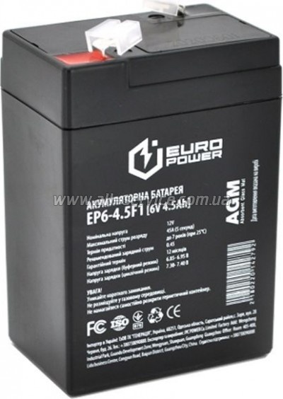 | Аккумуляторная батарея Europower 6В 4.5Ач (EP6-4.5F1) : 414323 Гарантия: 12 (мес.) Батарея до ДБЖ Europower 6В 4.5Ач (EP6-4.5F1) — це надійний та ефективний вибір для вашої системи безперебійного живлення. З напругою 6 В та ємністю 4.5 Аг, вона забезпечує стабільну роботу вашого обладнання, підтримуючи його продуктивність навіть у разі відключення електроенергії. Особливістю... | 261 Оптовая цена: 242.00 | |