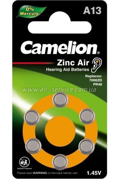 Батарейка для слухового аппарата Camelion Zinc-Air 1х6 шт (A13-BP6) : 315566 Гарантия: 2723 (мес.) Відкрийте для себе батарейку PR48 / A13 Zinc-Air від Camelion — ідеальне рішення для вашої портативної електроніки! Ці батарейки, відомі у своїй категорії як надійні та довговічні, мають форму таблеток та відповідають типорозміру PR48. Їхня повітряно-цинкова (Zn-Air) електрохімічна система... | 206 Оптовая цена: 190.00 | ||