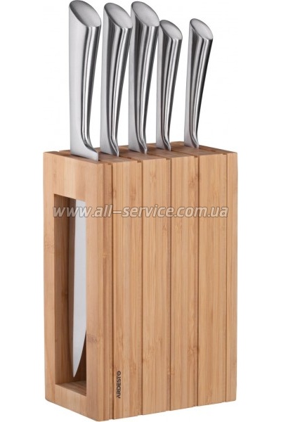 | Набор ножей Ardesto Black Mars (AR2020SW) Набір складається з п’яти ножів серії Ardesto Black Mars, до якого входять універсальний ніж, ніж кухарський, ніж для хліба, ніж для овочів, ніж-слайсер, та дерев’яного блоку.Леза та ручки виготовлені з нержавіючої сталі.Не підходить для використання в посудомийній машині. | 2037 безнал с НДС: 2037 | |