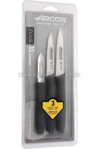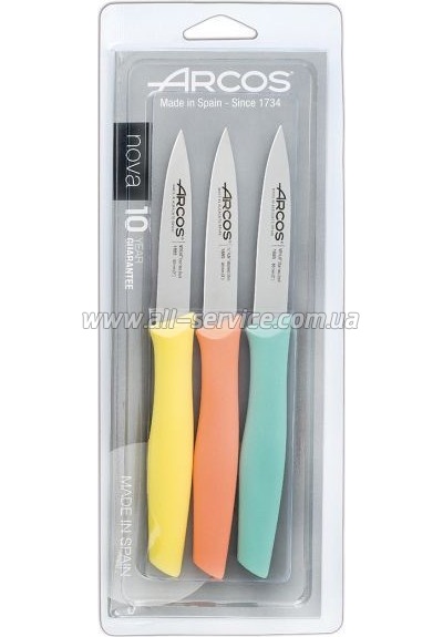 | Набор ножей Arcos (189500) Набір ножів Arcos – предмет першої необхідності на будь-якій кухні. Ножі серії NOVA створені спеціально для чищення та нарізування овочів та фруктів. Ножі виготовлені із запатентованої високоякісної нержавіючої сталі NITRUM®. Матеріалом для виробництва ручок служить поліпропілен -... | 578 безнал с НДС: 578 | |