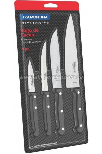 Набір ножів Tramontina Ultracorte, 4 предмети (23899/ 061) - чудовий набір клинків для Вашої кухні! У ньому є необхідні ножі для виконання будь-якої роботи з приготування їжі, в яких без використання клинків не обійтися. Характеристики: Лезо: нержавіюча сталь AISI 420. Рукоятка: поліпропілен із... | 1059 Оптовая цена: 1009.00 | ||