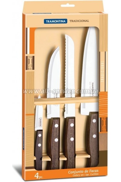 Набір із 4 ножів Tramontina Tradicional (22299/ 041) - зручний набір ножів для традиційної кухні або заміського будинку. Його рукояті виготовлені з натуральної деревини і відмінно впишуться в стиль кантрі. Гострі леза залишаться такими досить довго, адже вони виконані з якісної нержавійки. Не... | 1184 Оптовая цена: 1130.00 | ||