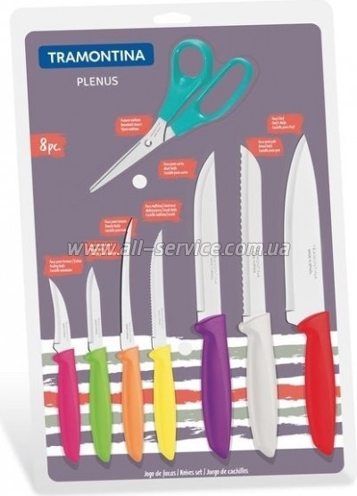 | Набір ножів Tramontina Plenus, 8 предметів (23498/ 917) включає всі найпотрібніші інструменти для чищення та нарізки будь-яких продуктів. Особливою відмінністю даного набору ножів є те, що всі рукояті мають різнобарвне забарвлення, що дуже оригінально доповнить кухонне начиння. Відмінним... | 1098 Оптовая цена: 1047.00 | |