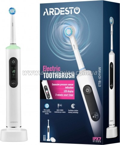 | Электрическая зубная щетка Ardesto ETB-ID114W : 452021 Гарантия: 12 (мес.) Електрична зубна щітка ARDESTO працює зі швидкістю 6 800–10 000 об./ хв і підтримує п’ять режимів чищення з п’ятьма рівнями інтенсивності. Щетинки DuPont і Pedex середньої жорсткості ефективно видаляють наліт, а їх знебарвлення слугує індикатором зношування насадки. Модель оснащено LCD-дисплеєм,... | 1099.00 Оптовая цена: 1027.00 | |