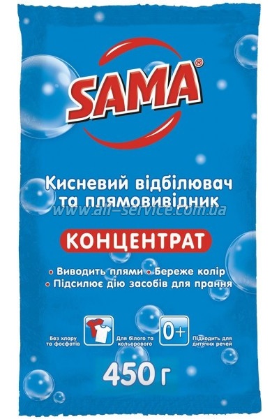 | Отбеливатель Sama Кислородный отбеливатель и пятновыводитель Концентрат 450 г (4820270631621) : 449259 Кисневий відбілювач ТМ SAMA призначений для прання білих і кольорових речей, відбілювання, видалення плям, а також миття поверхонь. Містить активний кисень, що не пошкоджує структуру волокон тканин. Є підсилювачем прального порошку та самостійним пральним засобом. Видаляє плями: кави, чаю, вина,... | 81.00 Оптовая цена: 81.00 | |