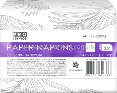 | Салфетки столовые PRO service Comfort для диспенсеров однослойные 250 шт. (4823071626513) Серветки PRO service мають високі вологопоглинальні здатності й економні у використанні.Склад: целюлозаТермін придатності: необмеженийУпаковка: 250 штСкладування: 3-складанняРозмір листа: 24х21 см | 100 безнал с НДС: 100 | |