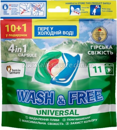 | Чотирьохкомпонентні капсули для прання Wash&Free «Гірська свіжість» — це ефективний сучасний засіб для прання як білих, так і кольорових тканин.Засіб діє м’яко та комплексно, очищає тканину від широкого спектру забруднень, зберігає колір та дарує вашим речам... | 134.00 Оптовая цена: 123.00 | |