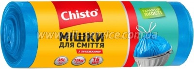 Пакеты для мусора Chisto с затяжкой 35 л 15 шт. (4823098408772) : 434453 Гарантия: 9536 (мес.) В кожному домі має бути чистота та порядок. Тому господині регулярно прибираються. Для зручності вони збирають сміття у пакети. Але часто буває, що ті несподівано рвуться від перевантаження сміттям. До вашої уваги представлені мішки для сміття від торгової марки Chisto. Вони міцні й оснащені... | 68.00 безнал с НДС: 68.00 | ||