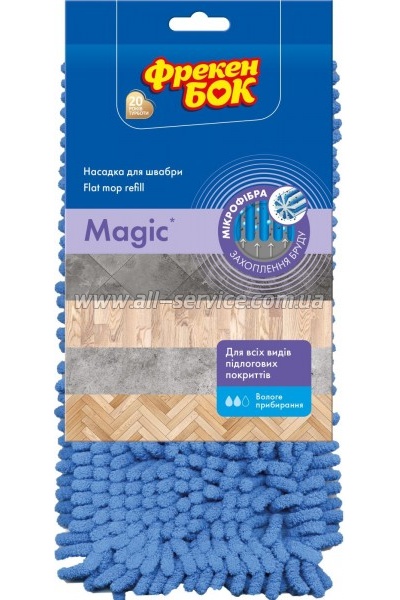 Насадка сменная для швабры Фрекен БОК Magic с микрофибры (4823071646030) : 434764 Гарантия: 7870 (мес.) Універсальна насадка для швабри з мікрофібри Magic з інноваційною структурою Шеніл для ефективного й делікатного прибирання. Не залишає подряпин, притягує пил, бруд і шерсть тварин. Для всіх видів підлогових покриттів. | 229 безнал с НДС: 229 | ||