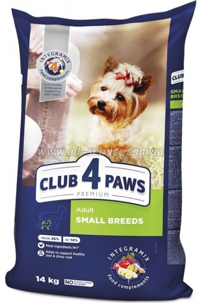 | Сухой премиум-рацион Club 4 Paws содержит мясные ингредиенты на первом месте в составе, сбалансированную формулу с высоким содержанием курицы (29%), и прекрасно подходит собакам малых пород весом до 10 кг и в возрасте от 1 года. Рацион обогащен комплексом Омега 3 + Омега 6 для здоровой кожи и... | 2335.00 Оптовая цена: 2259.00 | |