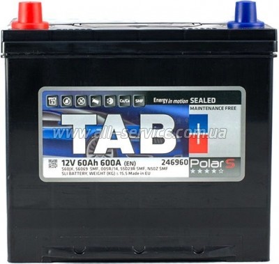 | Аккумулятор автомобильный TAB 60 Ah/12V Polar S Japan (246 960) Напряжение: 12 В Емкость батареи: 60 Ач Пусковой ток: 500 А Полярность: + / - (прямая) СНГ Тип клем: тонкий конус (asian) Тип корпуса: азиатский Необходимость обслуживания: необслуживаемый Тип АКБ: кальциевый (Ca/ Ca) Тип транспорта: легковые авто Ручка для переноса:... | 3520.00 безнал с НДС: 3520.00 | |